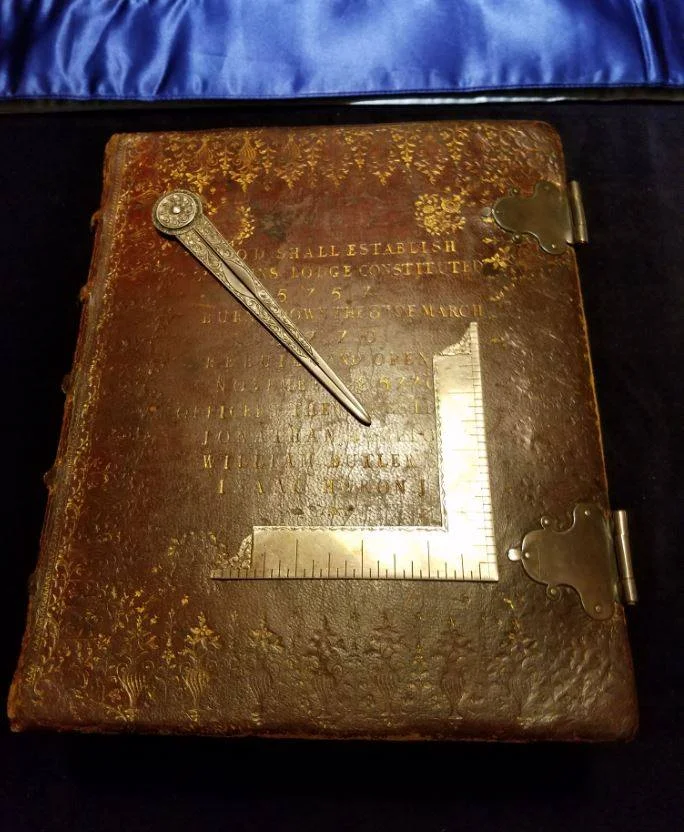 The George Washington Inaugural Bible getting ready for use in the Third Degree for St. John's Lodge. It has been a Lodge tradition to use the Bible specifically for the Third Degree for many years. The Bible was originally the Lodge's altar Bible starting in 1770 after the original building they met in burned down in a large scale fire in Lower Manhattan that year.