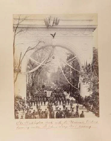 St. John's No. 1 leading the way under the Washington Arch with other Masonic Orders during the Centennial Parade of Washington's Inauguration in 1889.